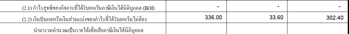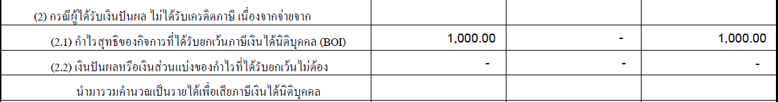 2. คำว่า ไม่ได้รับเครดิตภาษี หากพิจารณาง่ายๆก็คือ เงินปันผลที่เราต้องเสียภาษีหัก ณ ที่จ่ายในอัตรา 10% แล้วไม่ได้สิทธิเครดิตภาษี ก็ใส่ช่องนี้แทนครับ