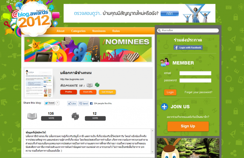 [VOTE] รบกวนขอคะแนนโหวตให้ “บล็อกภาษีข้างถนน” ในการแข่งขัน Thailand Blog Awards 2012