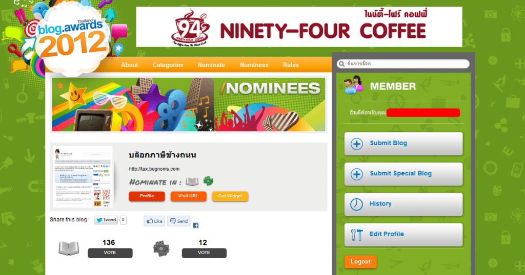 – VOTE ผ่านระบบสมาชิกของ Thailand Blog Award 2012-